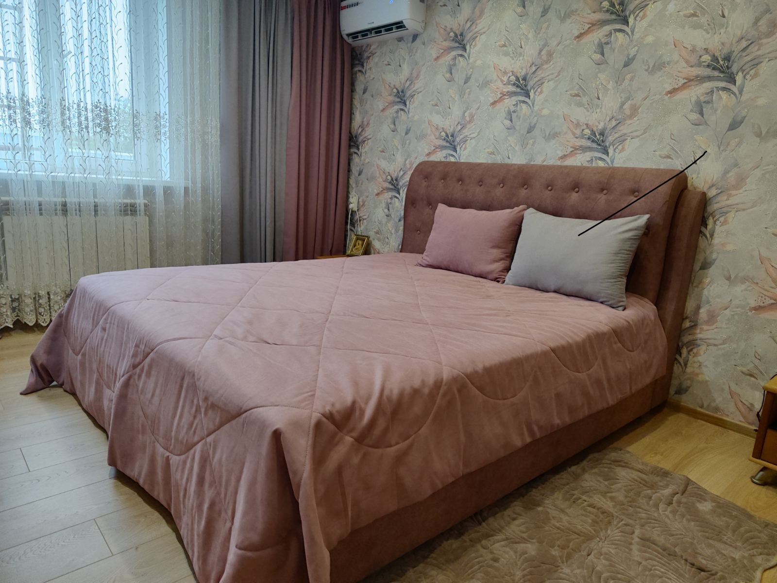 Очень удобная кровать со стильным высоким изголовьем. Смотрится просто здорово. Кровать прочная и спать на ней действительно комфортно. Есть ящик для хранения белья.