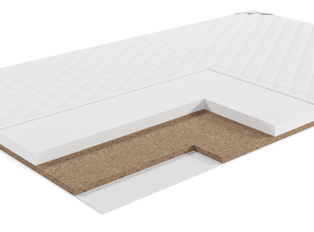 · Кокосовое волокно. Натуральный гипоаллергенный материал. Благодаря пропитке волокна прочно скреплены в цельную плиту. Кокосовое волокно придает матрасу жёсткость и обладает бактерицидными свойствами.