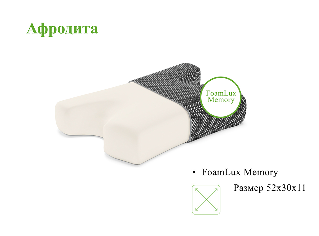 Можно ли спать на боку и просыпаться без заломов на лице? Да, если вы спите на подушке “Афродита”! Это специальная разработка: Х-образная форма обеспечивает комфортную поддержку шеи и головы, при этом лицо едва касается подушки. А пена с эффектом памяти Foam Lux Memory деликатно подстраивается под положение тела, не создавая лишнего давления. Это способствует ровности кожи и отдохнувшему виду сразу после сна.
