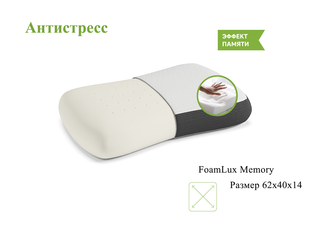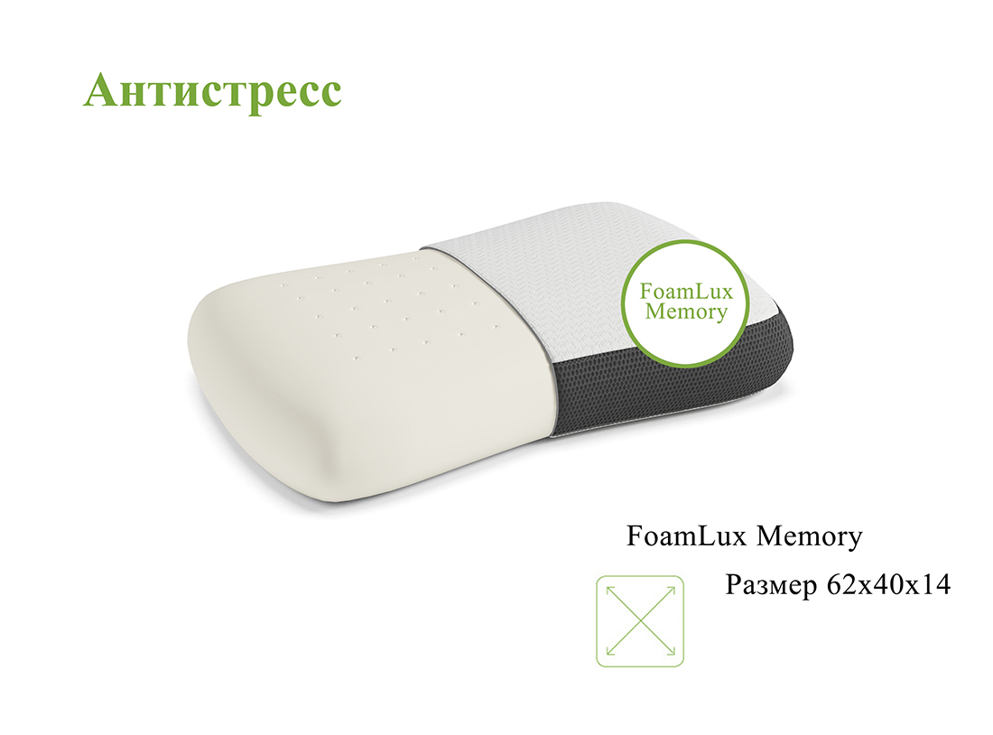 · FoamLux Memory. Современная гипоаллергенная пена с эффектом памяти. Отличается высокими ортопедическими свойствами: принимает анатомическую форму тела, обеспечивает правильную поддержку позвоночника и создаёт высокий уровень комфорта. Равномерно распределяет нагрузку по всей поверхности и снимает напряжение на отдельных участках Сертификат соответствия качества CertiPUR свидетельствует о безопасности продукции и подтверждает, что в составе пены нет вредных химических веществ.