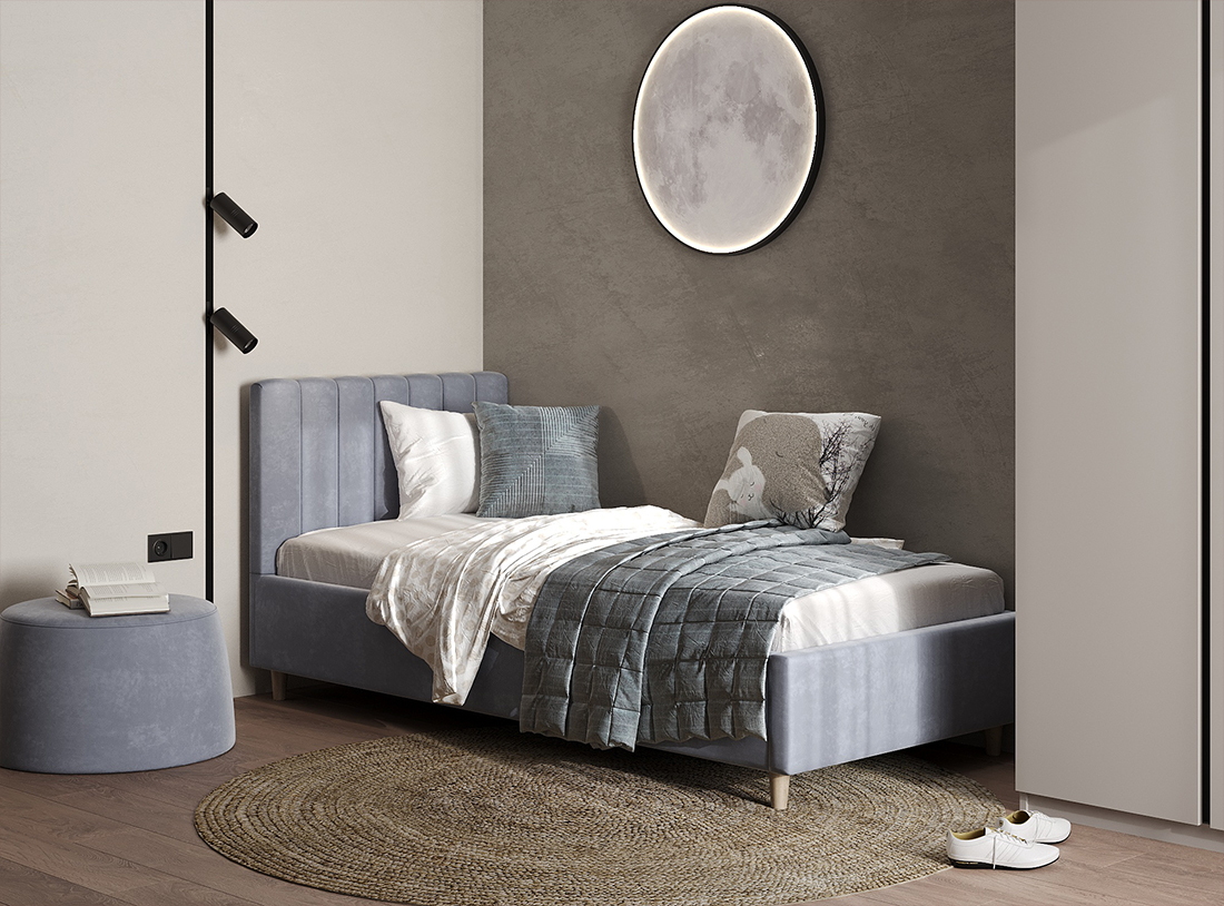 Кровать «Agata» односпальная от интернет-магазина ЭОС, производится со встроенным основанием с ортопедическими ламелями. Модель в лаконичном дизайне, мягкое изголовье строгих и слегка скруглённых линий. Кровать «Agata» — это кровать, которая впишется в любой современный интерьер. Для постельного белья предусмотрена ниша. К кровати отлично подойдет матрас ЭОС Тип 14.